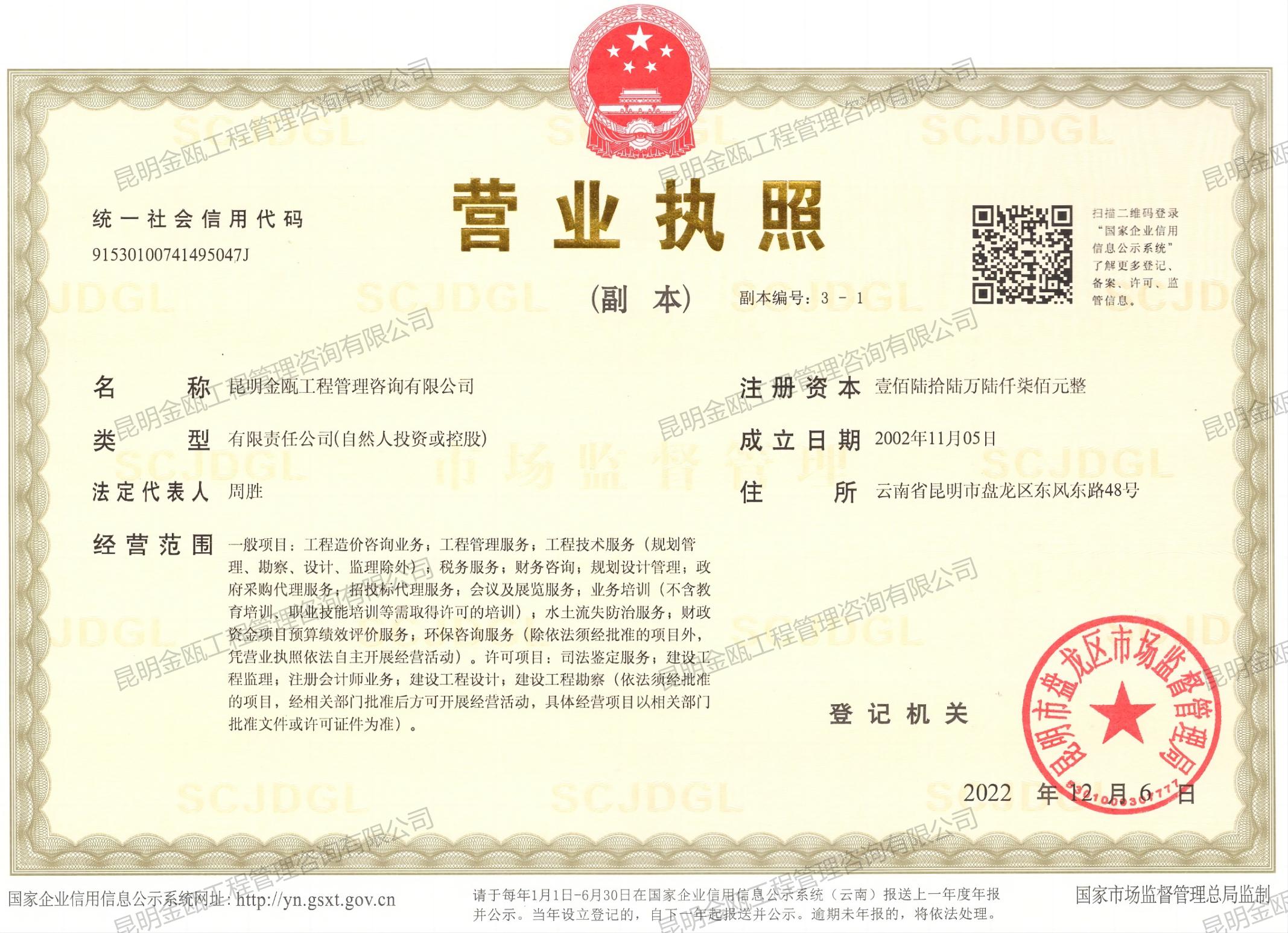 昆明金甌工程管理咨詢(xún)有限公司前身為昆明有色冶金設(shè)計(jì)研究院經(jīng)濟(jì)咨詢(xún)部,2002年脫鉤改制成立,是甲級(jí)資質(zhì)工程造價(jià)咨詢(xún)企業(yè),公司具有ISO9001質(zhì)量管理體系認(rèn)證證書(shū),具備在全國(guó)范圍內(nèi)承擔(dān)各類(lèi)工程造價(jià)咨詢(xún)業(yè)務(wù)的資質(zhì)和能力,是一家專(zhuān)業(yè)性廣而全、精而專(zhuān)的造... 【查看詳情】- “綠色迎春 徒步西山”—昆明金甌三八女神節(jié)爬山活動(dòng)... 2023-03-20