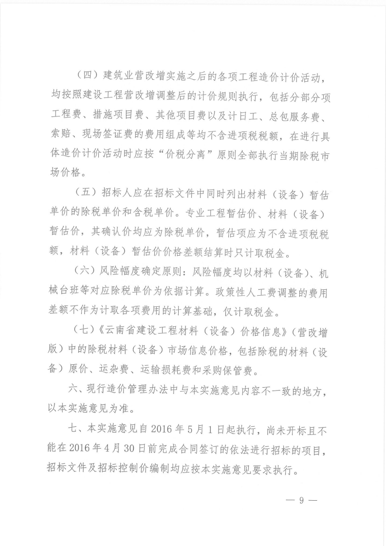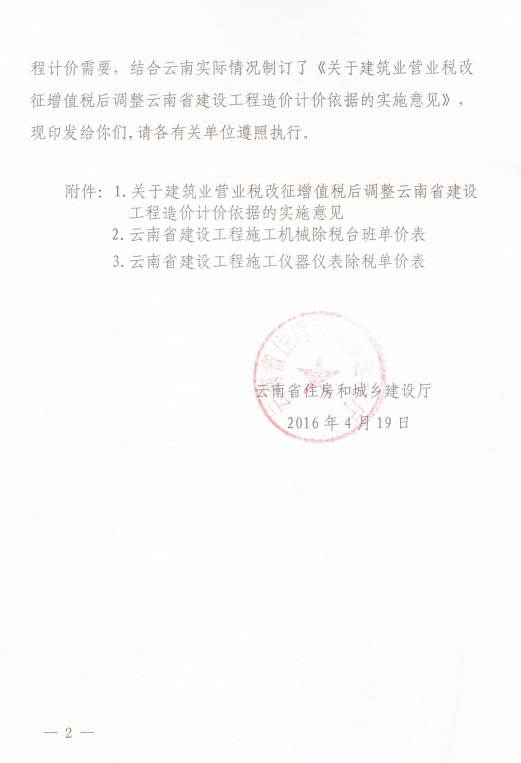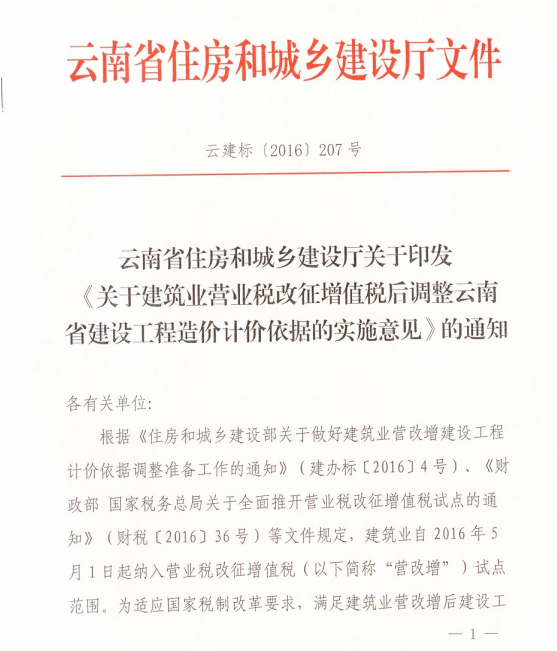 關(guān)于建筑業(yè)營業(yè)稅改征增值稅后調(diào)整云南省建設(shè)工程造價計(jì)價依據(jù)的實(shí)施意見的通知 云建標(biāo)[2016]207號