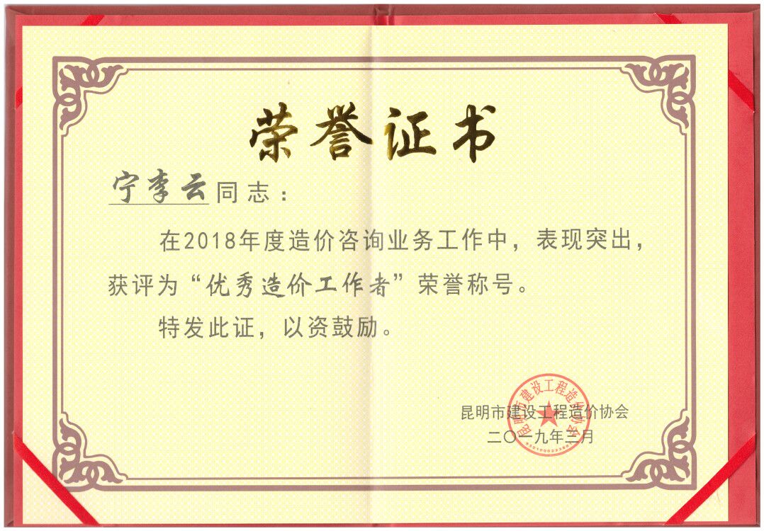 祝賀寧李云、湯瓊芳同志榮獲2018年度“優(yōu)秀造價工作者”