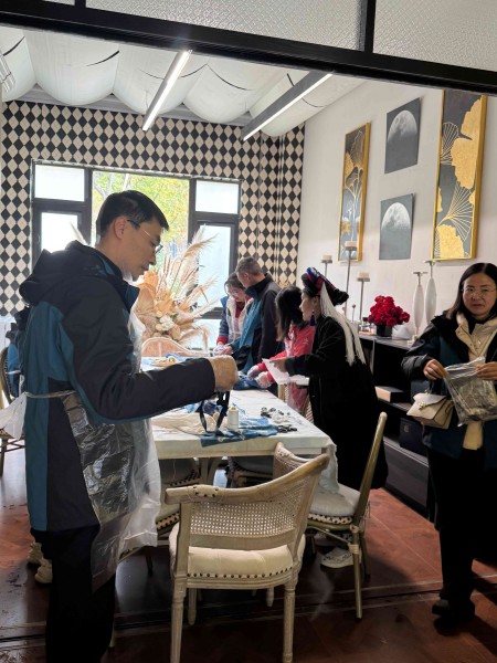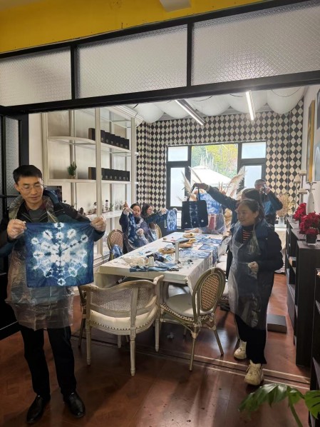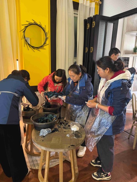 第二天一早的晨間活動以少數(shù)民族的扎染活動開啟,在老師的悉心指導下,“同學”們都陸續(xù)完成了自己的作品,在將成品裝袋的時候大家小心折疊、放置,嘴角露出滿意的微笑,或許這就是通過自己的雙手努力而來‘成果’的價值吧。某一同事經(jīng)過時,聽到一句小聲的嘀咕“我要把它送給我的寶寶”,是呀,除了是同事,是員工,他們可能還是心系家庭的爸爸媽媽,是想把最寶貴的物品送給心里最疼愛的人的社會角色吧。