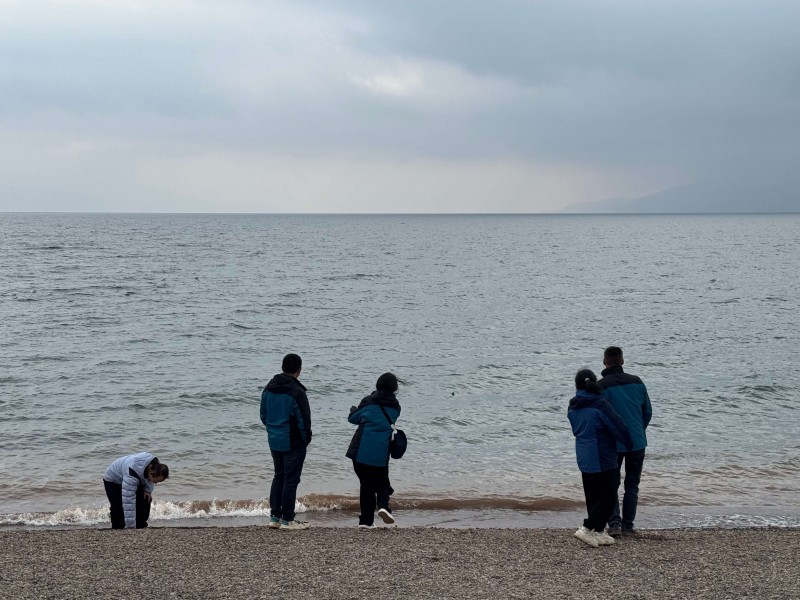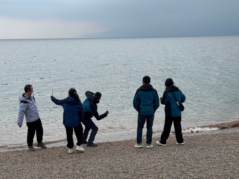 徒步至紅沙灘的時候大家又變成了孩子在嬉戲打鬧,在湖邊看到石子變撿起來打水漂,亦或者互相幫襯著拍照打卡,潛移默化中同事關系漸變成了朋友關系。