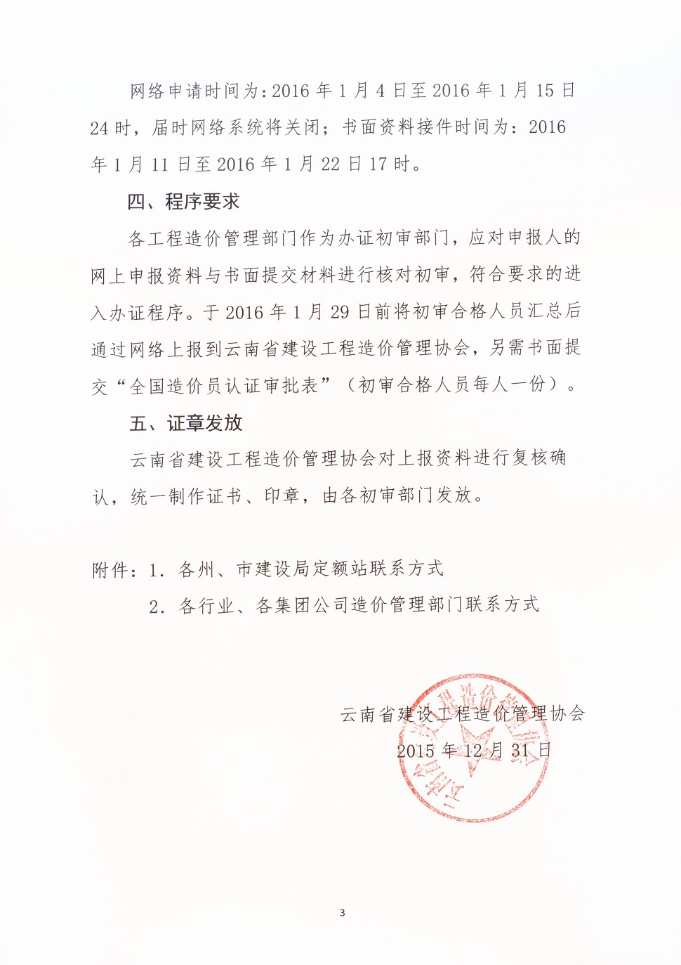 關(guān)于辦理2015年度云南省建設(shè)工程造價(jià)員證章的通知